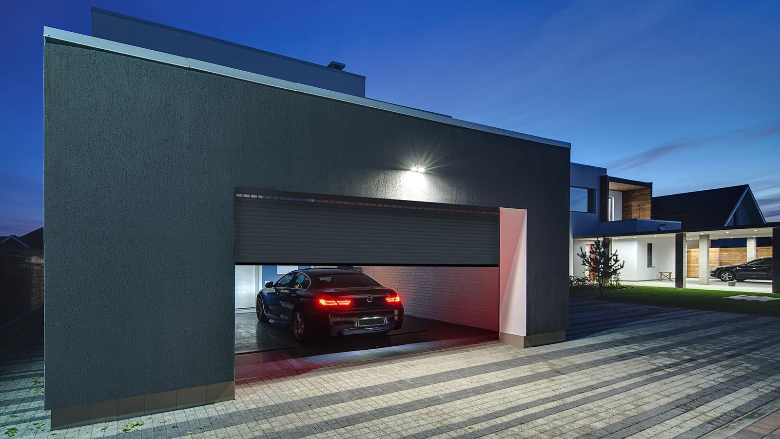 La porte de garage enroulable fonctionne suivant le même principe qu’un volet roulant. Compacte et stable, elle se compose d’un tablier avec des lames horizontales rainurées. En suivant des rails de guidage, lesdites lames s’enroulent dans un coffre installé au plafond. À l’image du volant roulant, cette menuiserie garantit une fermeture totalement hermétique, ce qui optimise votre sécurité et votre isolation.